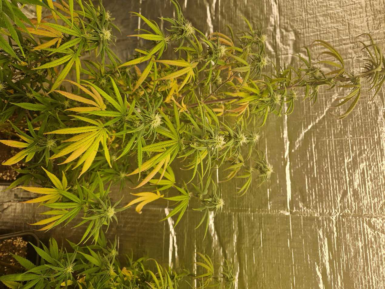 Здраввйте, посаживих ги малко, но листата продължават да жълтеят а някой стават кафеникаво- червени ! Махам сухите и болните листа, но продължават да стават такива! Може ли съвет с какво да пробвам да ги храня, или като цяло кал да ги закрепя да избутам грола до край, сега са на 21дни 12/12, влага около 50%, поливам с по около 0,5 до 0,7л на два дни, темпееатура 23градуса, лампите са на 100% на около 30+ см от върховете, храня с biobizz bio-bloom по 4мл на литър! Може да съм ги пребил с препарата за гадинките, но без него съвсем щяха да умрат