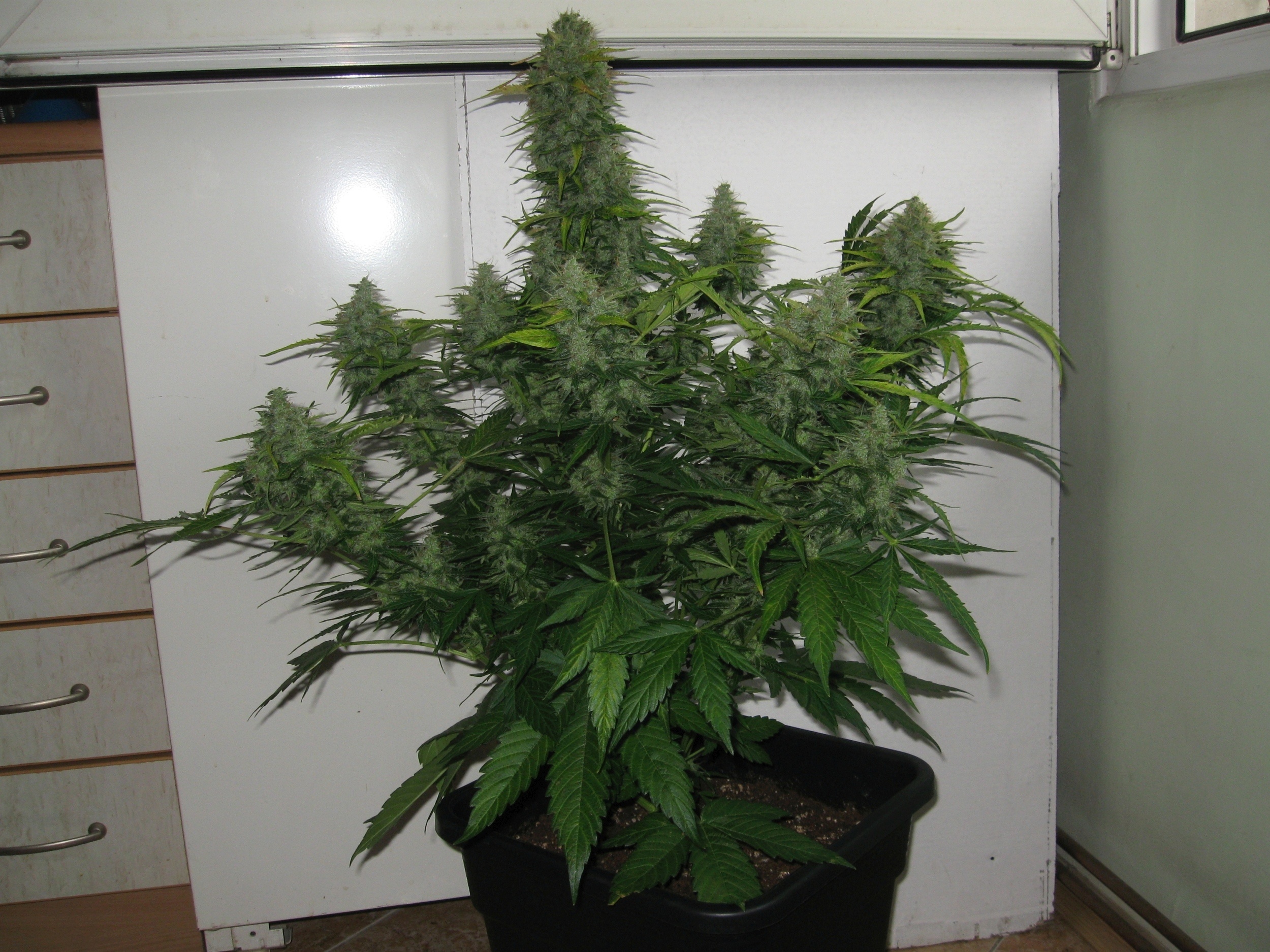 Ползвах почва Light Mix на Biobizz и от техните торове единствено, Grow, Bloom и Top Max. Допълнително съм ползвал само Английска сол, листно. Сортовете са на RQS Sweet Skunk и Royal Kush, автомати отгледани на режим 18/6 от начало до край с 250 W HPS, без CoolTube, Лятото. Не го правете никога