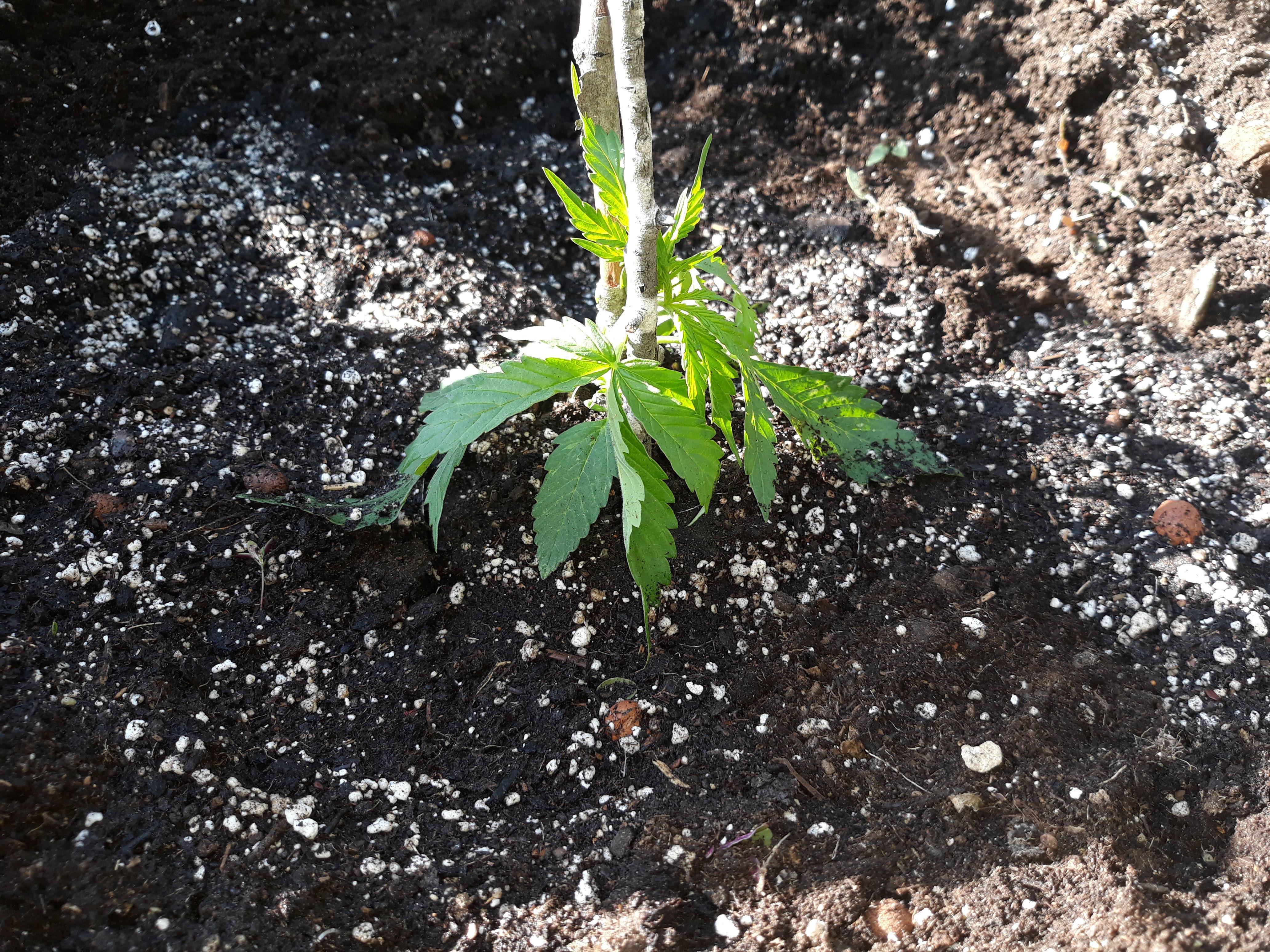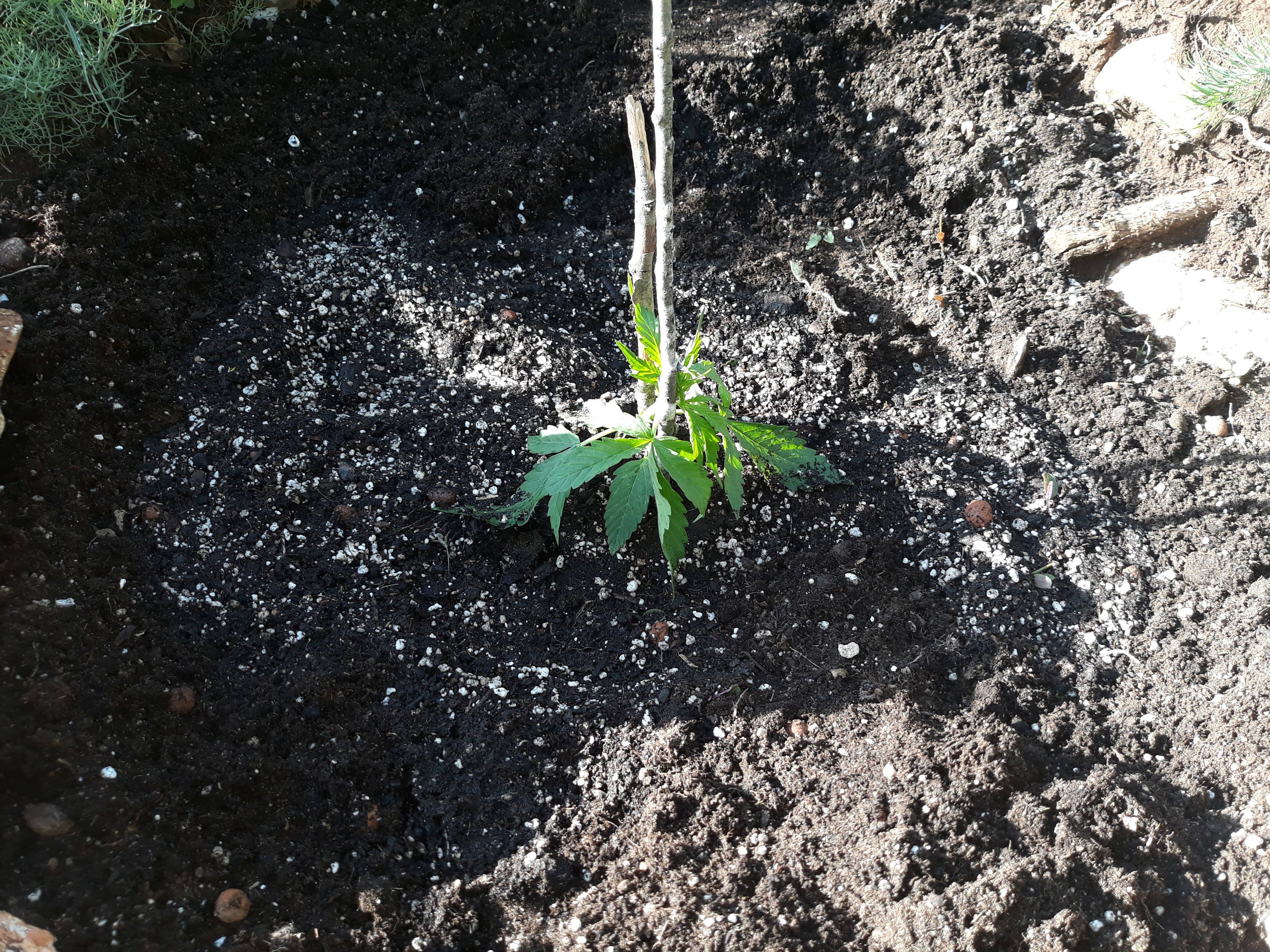 Отново имам и 2-ра градинка, там вчера изкарах също два автомата, Auto Anesthesia и Cream Caramel Auto отново семка от 24 Skunk. Изкарах ги точно на 2 седмици, тях ги карах без root stimulator и не бяха пуснали много корени, малко се разпадна пръста при изваждането от саксията, но не успях да ги повреда. Миналата година на същото място имах два текпота, но тази година реших да взема кирката, и ги направих по- дълбоки дупките и са направо в земята. Почвата която ползвах е стара почва от миналата година, ЧКЧ и оборска тор. Полято е с байкал, сложил съм по 100-на грама Bad Guano и дупките са готови от преди месец, може и малко повече. Тази градинка я посещавам също често, там ходя вечер на разходка с кучето и си комбинирам нещата.
