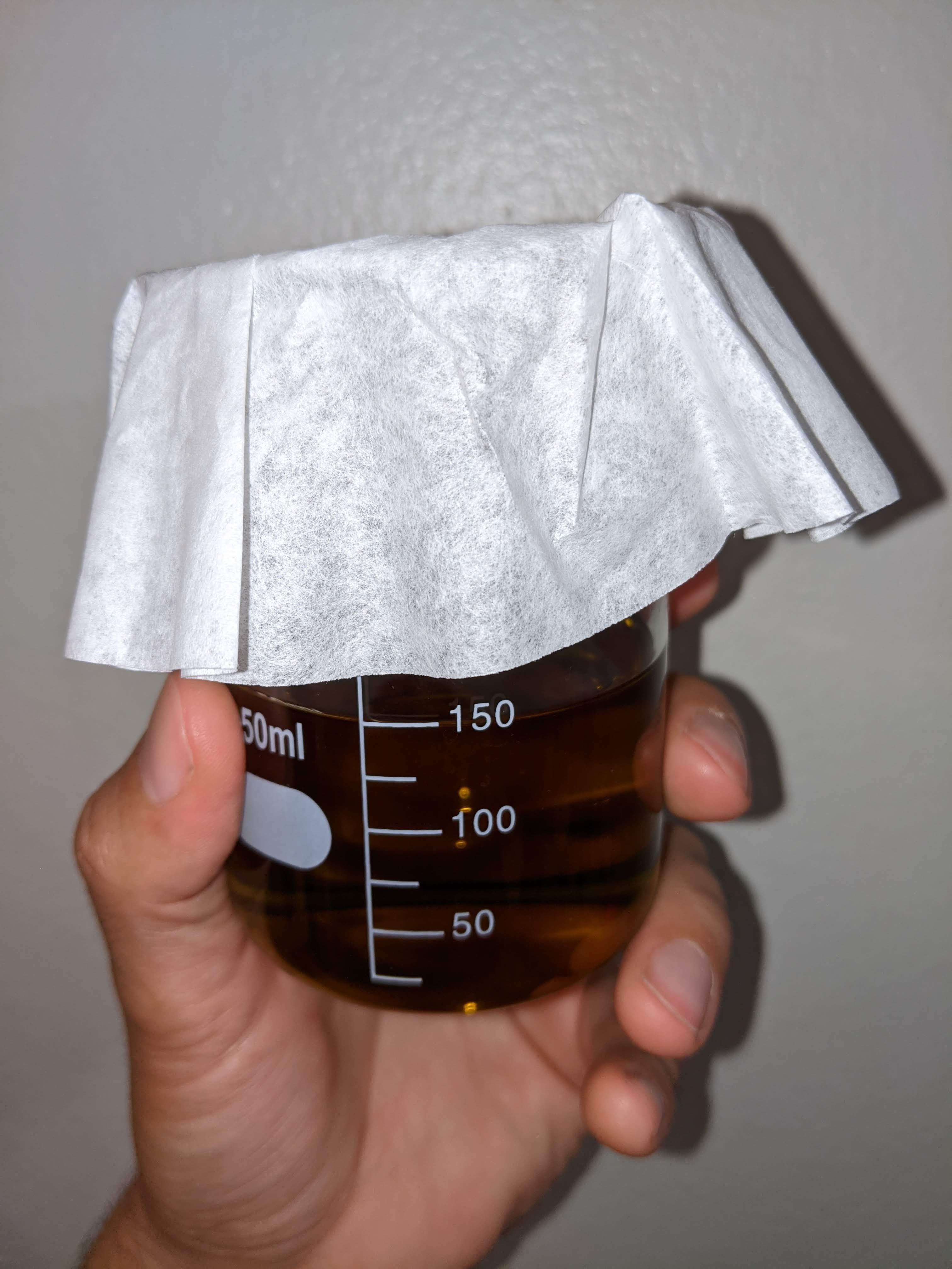 След това прецеждате през филтер за кафе и пълните в празните капсоли.
