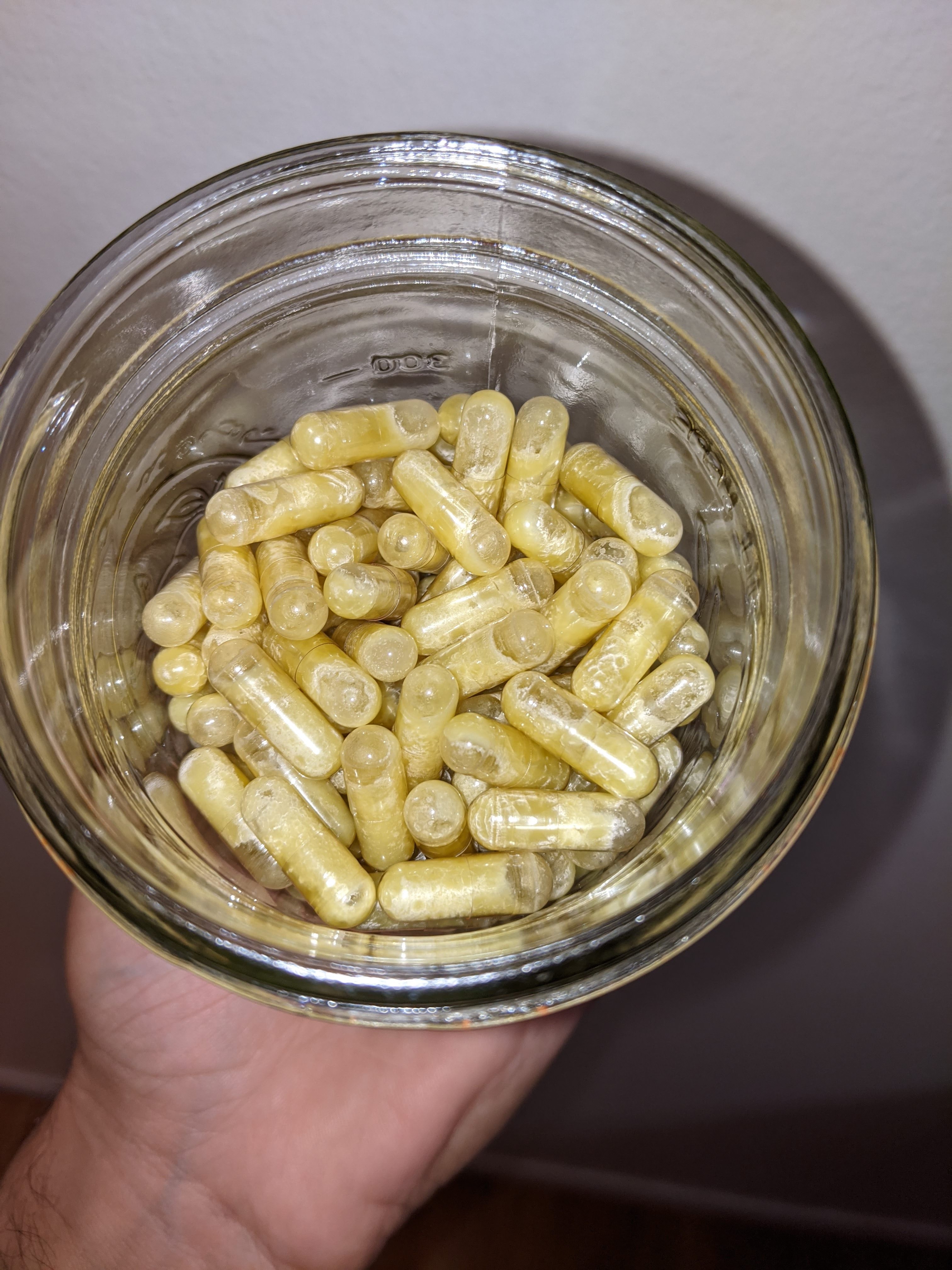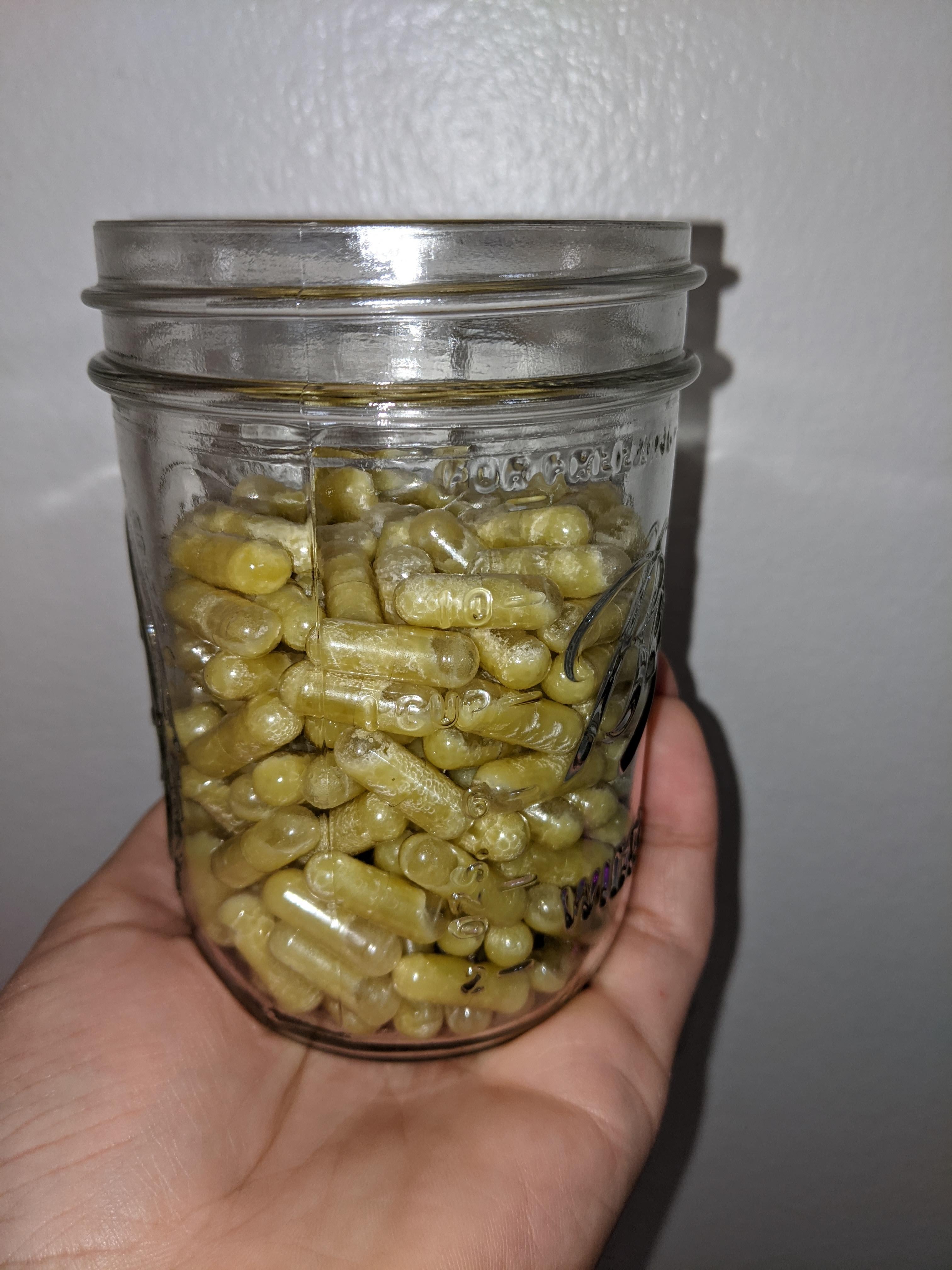 Желатинови капсули бързо се пълнят докато е топло и течно (не горещо) и след това ги съхранявам в хладилника през цялото време.