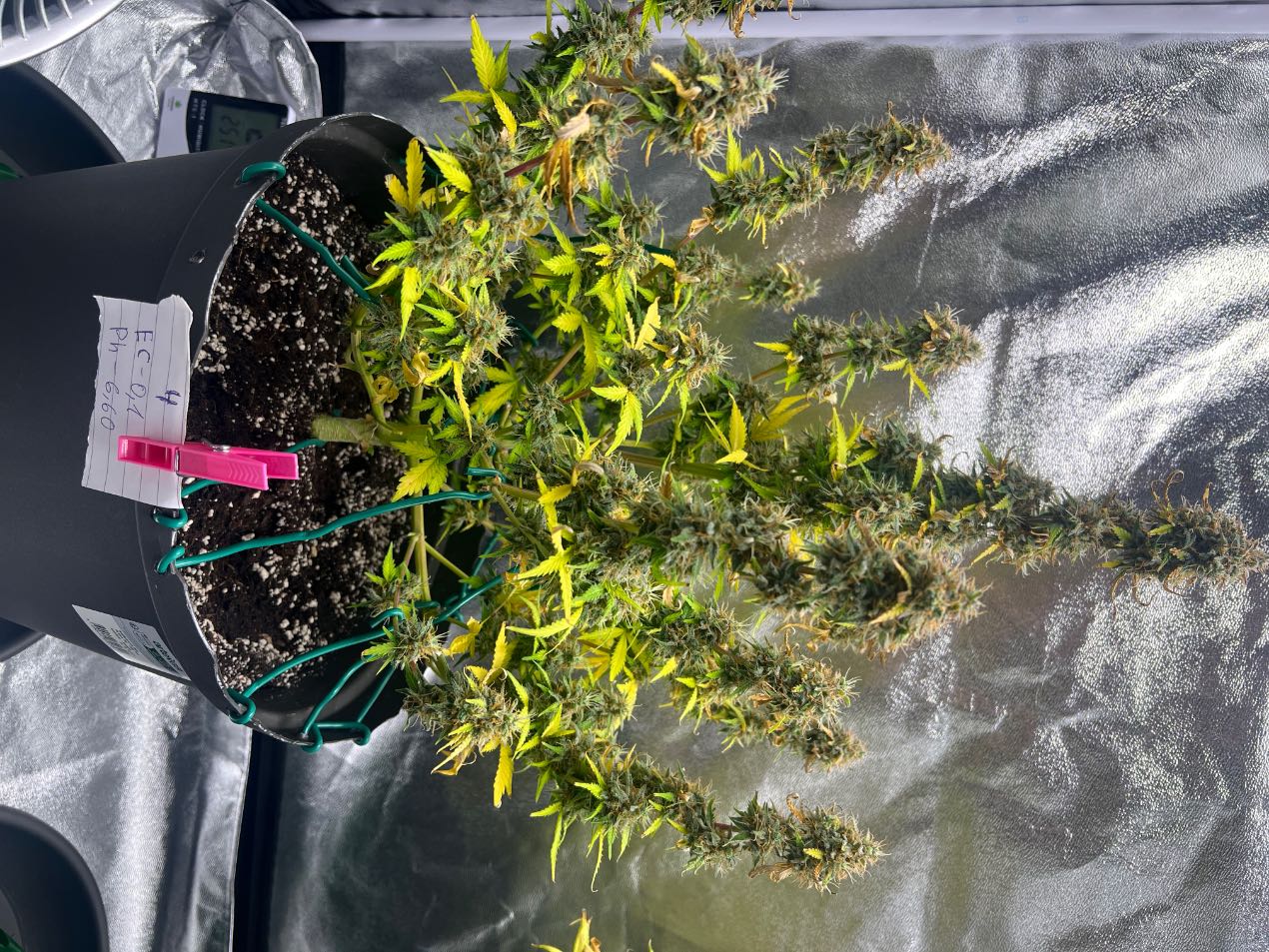 - [ ] Защото нали преди да ги отрежеш трябва да е по ниско EC-то макс да е 0,3 дали според вас това растение номер 3 където му е вдигнато на 0,5 EC-то пак след 6/7 дни като изсъхнат саксиите да го промия с 5/10 л ? Според мен още 10/14дни незнам има доста прозрачни трихоми , просто поливам, наблюдавам и чакам .
