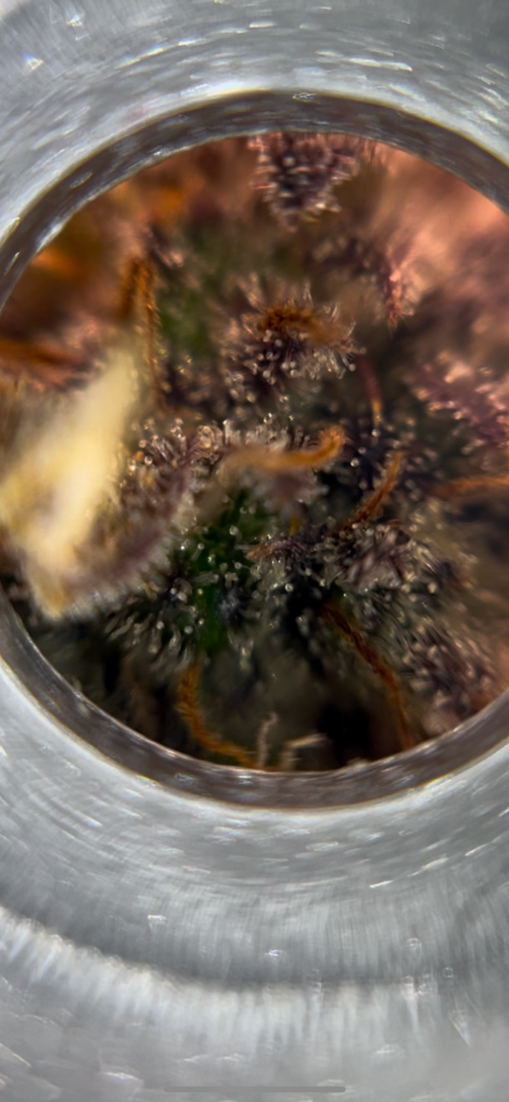 Ден 78 и сега сме в началото на 8 седмица от цъфтежа на миналия пост се обърках (принципно го дава 8 седмици цъфтежа) и днес промих сутринта всяка една саксия със по 30л само дестилирана вода и само нагласих pH-то на 6.3/6.4 и без cal-mag вече . Накрая от последните милилитри на промивката от дренажите проверих на всяка саксия EC-то им беше паднало на около 0.1 и pH-то им беше от 6.40 до 6.60 на някои саксии незнам защо , най вероятно трябва да си купя по хубав pH метър въпреки че калибрирах уредите преди промивката , надявам се не е голям проблем ако от дренажите на някои показва малко над 6.5 pH просто следващия път ще ги полея с pH 6.2. Иначе малко се свиха някои жълти листа надолу клюмнаха но мисля че е нормално след промивката , дали да им вдигна малко лампата след промивката според вас в момента лампата е на 400 PPFD ? ще ги следя сега и мисля че до 10/14 дни трябва да са готови трихомите са около 30% млечни според мен и останалите 80% са прозрачни ( пращам снимка и на тях )