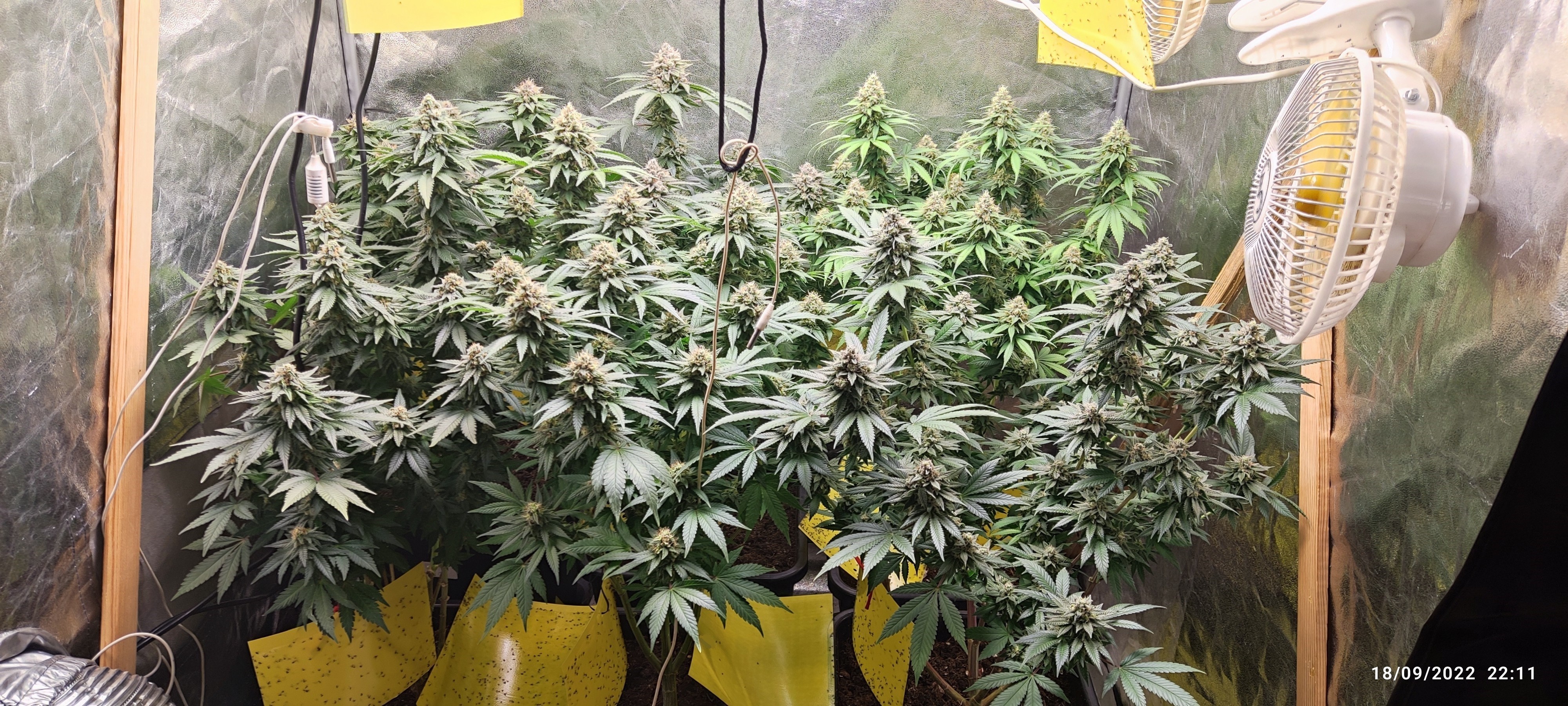 Здравейте, станаха 42 дни откакто са в палатката и вече се приближаваме към финала. Главуните продължават яко да надуват, карам ги по същата схема с максимални дози (дори малко над максималните) Bio Flores и Bio Boost. Положението с вредителите отново стана доста кофти, понеже минаха няколко седмици от последното пръскане с Нийм Азал, но ще избутаме някак до края. Обмислям към средата на следващата седмица да режа, като не съм планирал промивки, ще си ги зобя до край.