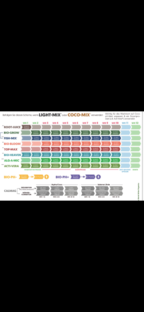 Sicario00 написа: 20 Мар 2025, 16:50 Здрасти колеги и колежки имам няколко въпроса към всички . Сега мисля да започна втория си гроу със 4 автоматични семки Gelato от Fastbuds в 15л саксии с почва на biobizz lightmix и целият сет торове на BioBizz в палатка 100/100/200см (лампа 240w) и тъй като нямам филтрирана вода от вкъщи чешмата и искам да знам дали е възможно от покълването до края на процеса да използвам единствено дестилирана вода и дали това е полезно за крайния продукт или най добре да купя една обратна осмоза ? И според вас от този сет с торовете сега ще оставя снимка и пише че още от първата седмица се започва с root-juice тора за корените , bio-heaven и acti-vera , но не трябва ли след като покълнат и първата седмица само вода (дестилирана в моя случай) и от следващата седмица да почна да следвам този график с торовете от снимката ?