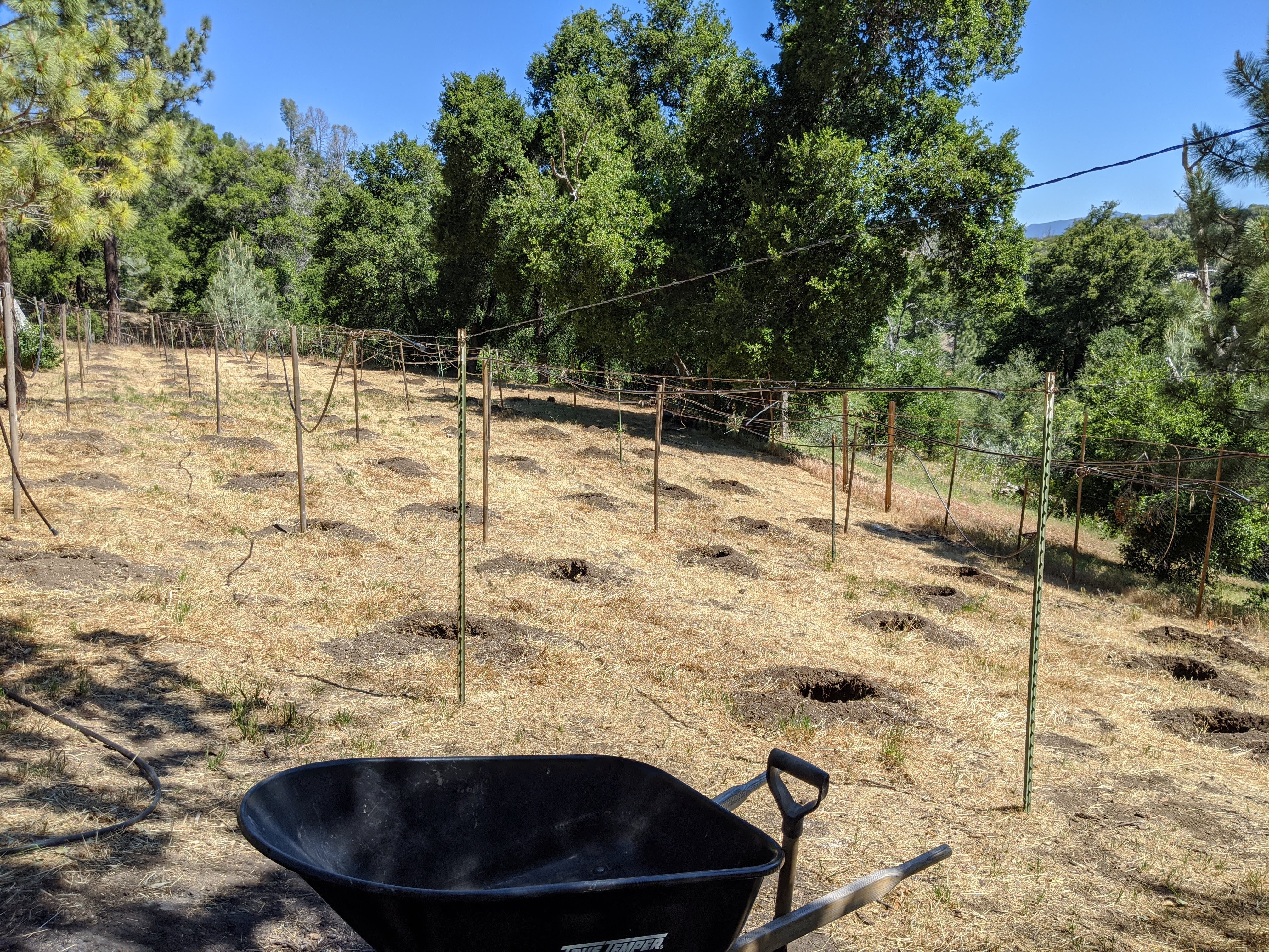 Дупките са на 6 метра една от друга и са шахматно на редовете. Така растенията ще имат място и няма да се допират по-никое време от развитието си. Така при нас се намалят драстично заболяванията.